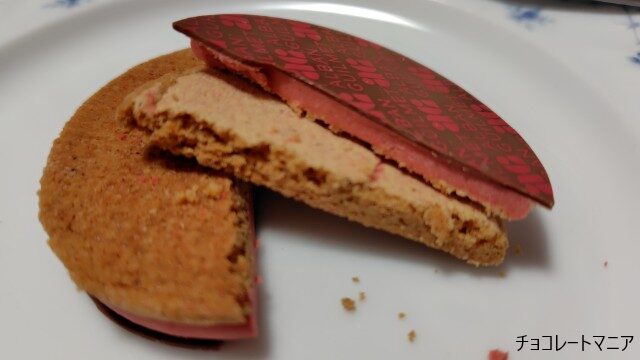 半分に割ってみると、中央に閉じ込められた苺のチョコが可愛い!